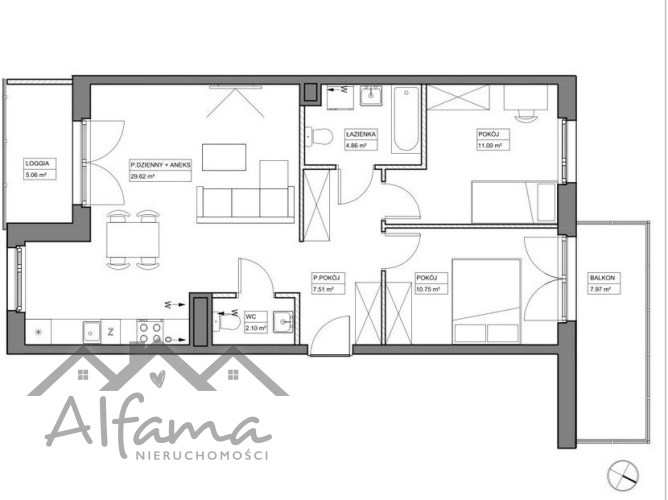 3 rooms 55,00 m2 11 170,91 zł/m2 2 632,29 EUR/m2