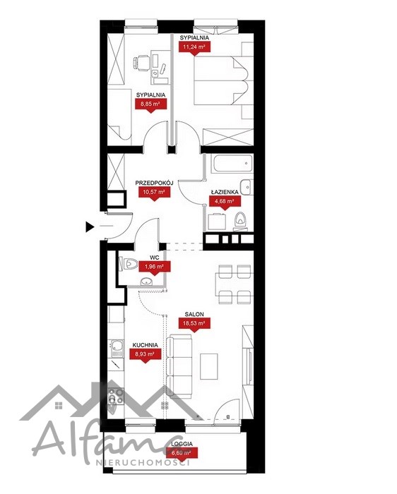 3 rooms 59,00 m2 11 874,58 zł/m2 2 798,23 EUR/m2