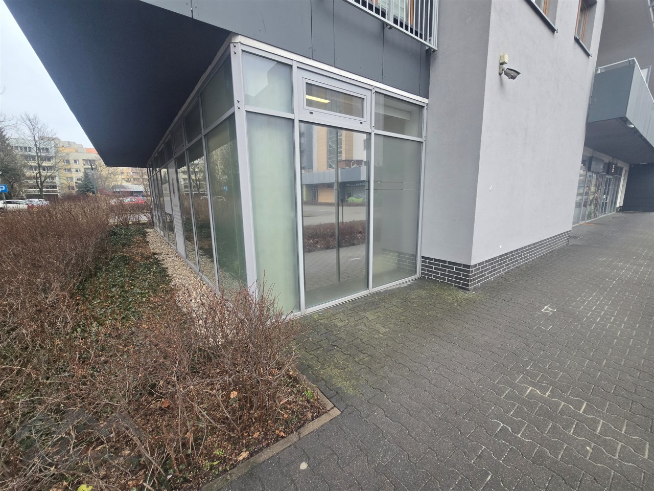 Lokal narożnyz dużymi witrynami.