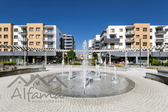 Okolica z wysokim zaludnieniem, zwarta wielorodzinna zabudowa mieszkaniowa oraz centra biznesowe dookoła.