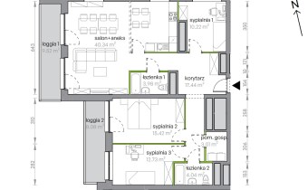 Przestronny, jasny, z dużymi przeszkleniami i wyjściem na loggię 1 (9,52 m²). Idealna przestrzeń do wspólnego spędzania czasu i przyjmowania gości.