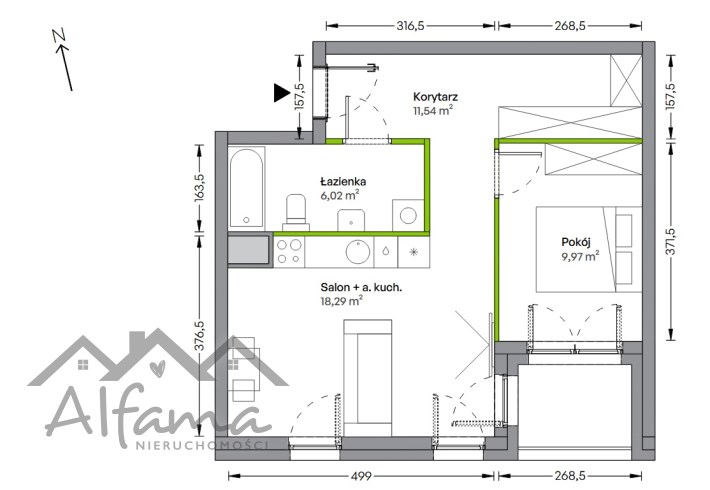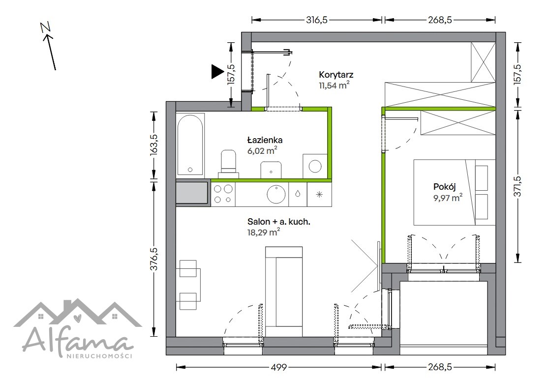 funkcjonalny, rodzinny układ – dwie sypialnie oraz przestronny salon z aneksem/możliwość wydzielenia kuchni