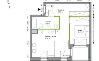 Przestronna część dzienna z dużymi przeszkleniami, która zapewnia naturalne światło przez cały dzień. Aneks kuchenny ustawny, z miejscem na pełną zabudowę oraz stół jadalniany(możliwość wydzielenia kuchni) Z salonu wyjście na balkon – idealny na poranną kawę czy popołudniowy relaks.