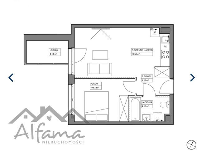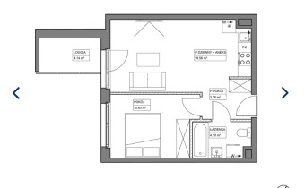 Mieszkanie składa się z ustawnego pokoju dziennego z aneksem kuchennym,sypialni, przedpokoju z miejscem na szafę, łazienki oraz