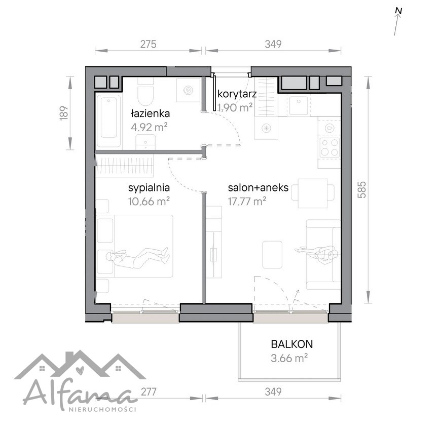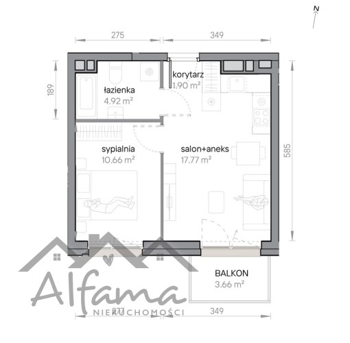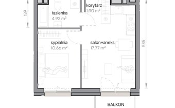 Mieszkanie składa się z przestronnego pokoju dziennego z aneksem kuchennym, sypialni, przedpokoju, łazienki oraz dodatkowo  balkonu.