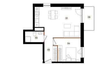 Mieszkanie składa się z pokoju dziennego z aneksem kuchennym, sypialni, przedpokoju, łazienki oraz dodatkowo dużego balkonu z ekspozycją wschodnią.