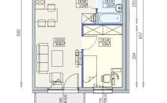 Mieszkanie składa się z salonu z aneksem kuchennym