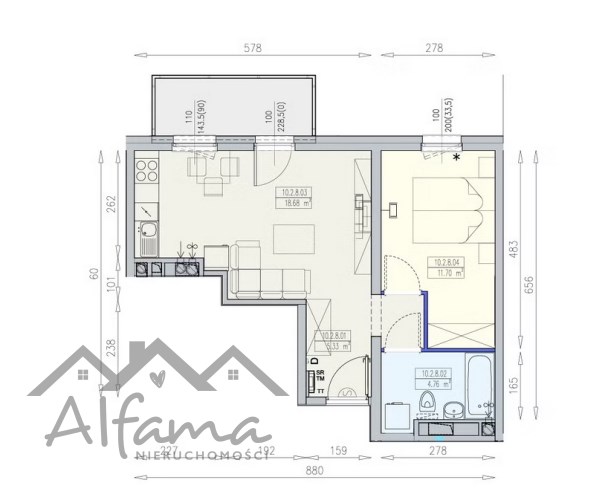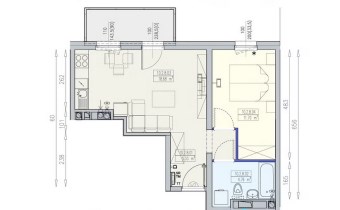 Mieszkanie składa się z salonu z aneksem kuchennym-