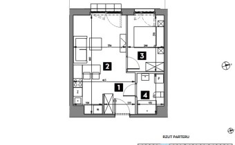 Słoneczne, funkcjonalne mieszkanie o powierzchni 38.29 m² usytuowane na parterze nowoczesnego budynku z windą.