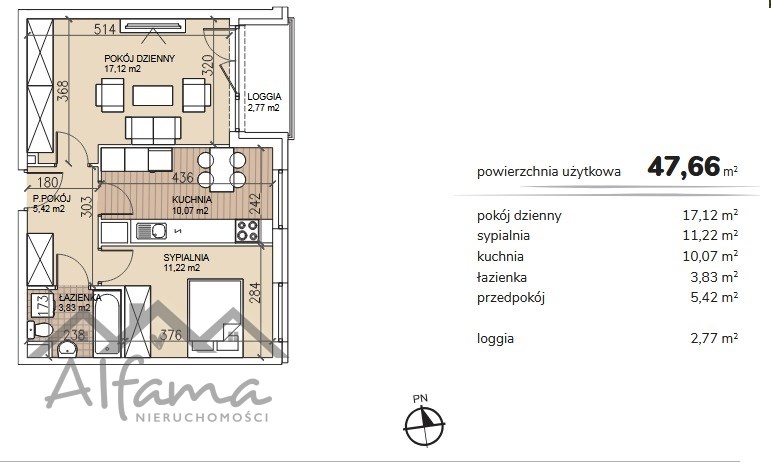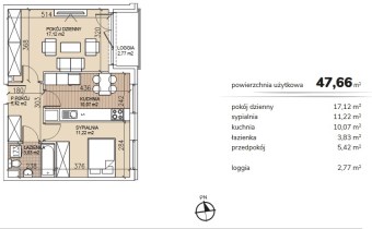 Funkcjonalne mieszkanie o powierzchni 47,66 m2 usytuowane na drugim piętrze apartamentowca-ten sam układ jest tez dostępny na innych kondygnacjach.