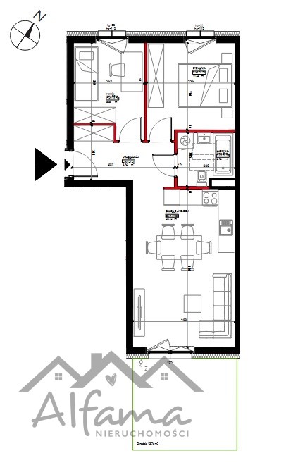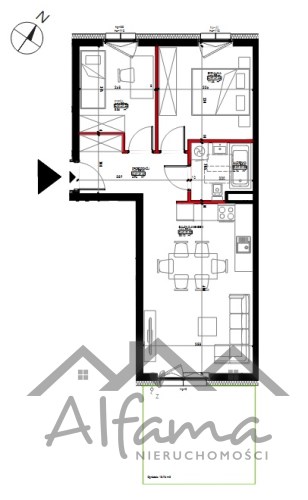 Mieszkanie składa się z przestronnego pokoju dziennego z aneksem kuchennym (23.10m2), sypialni (11.44m2), drugiej sypialni (8.86m2),ustawnego przedpokoju z miejscem na szafę(6.94m2), łazienki(4.16m2) oraz dodatkowo ogródka (ok.14m2) od południa.