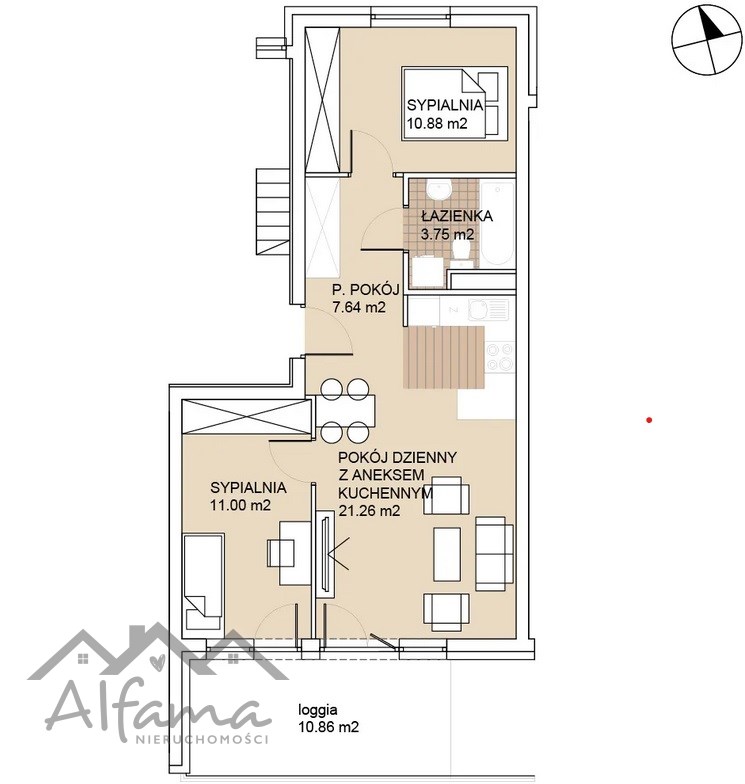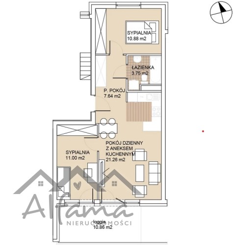 Mieszkanie składa się z pokoju dziennego z aneksem kuchennym, 2 sypialni, przedpokoju, łazienki oraz dodatkowo balkonu o powierzchni 11m2