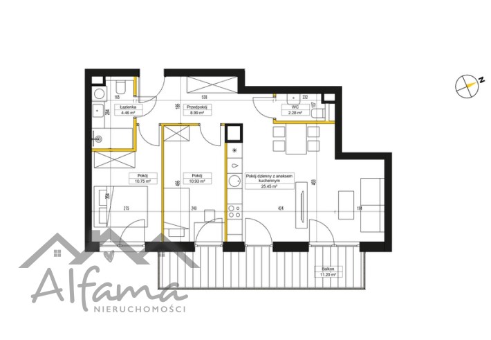 Mieszkanie składa się z przestronnego salonu z aneksem kuchennym , 2 sypialni, ustawnego przedpokoju, łazienki, wc oraz dodatkowo tarasu(11 m2)