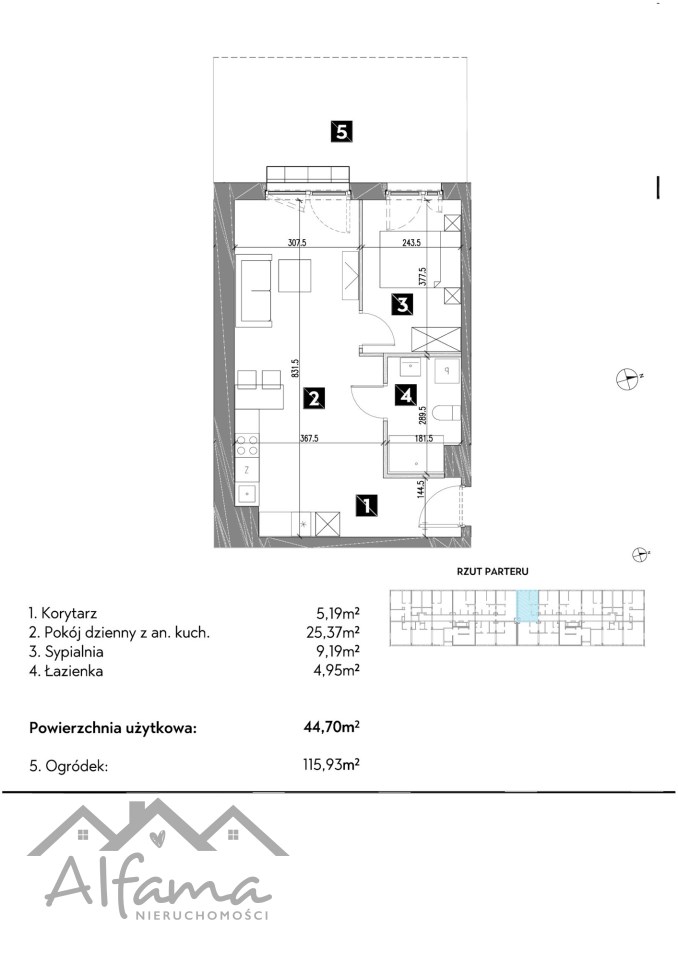 dodatkowo duży ogródek o powierzchni 115,93 mkw