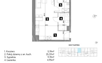 Słoneczne, funkcjonalne mieszkanie o powierzchni 44,66 m² usytuowane na parterze nowoczesnego budynku z windą.