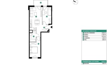 Mieszkanie składa się z ustawnego pokoju dziennego z wydzielonym aneksem kuchennym,2 sypialni, przedpokoju z miejscem na szafę, łazienki oraz
