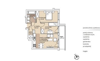Funkcjonalne mieszkanie trzypokojowe o powierzchni 48,80m2 usytuowane na drugim piętrze apartamentowca.