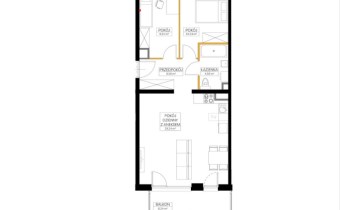 Mieszkanie składa się z przestronnego salonu z aneksem kuchennym(29m2), 2 sypialni, ustawnego przedpokoju,  łazienki,  oraz dodatkowo dużego balkonu(6.20m) od południa.