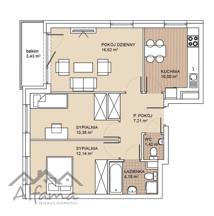 - 2 wygodnych,dużych sypialni