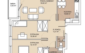 Funkcjonalne mieszkanie trzypokojowe o powierzchni 62 m2 usytuowane na parterze apartamentowca-ten sam układ jest też dostępny na wyższych kondygnacjach.