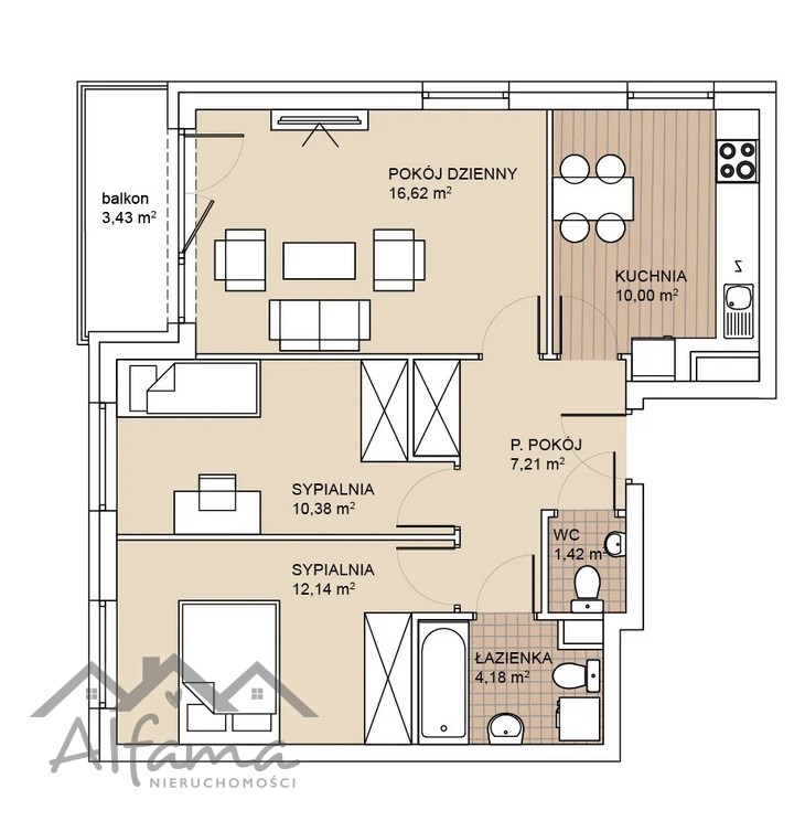 - 2 ustawnych sypialni