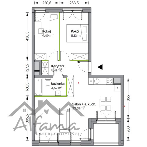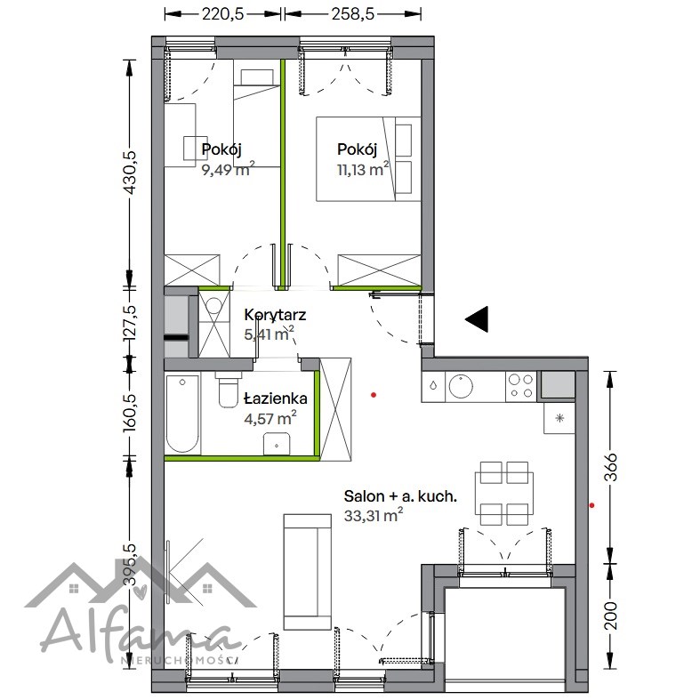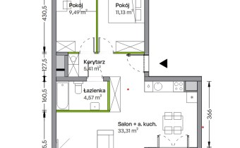 funkcjonalny, rodzinny układ – dwie sypialnie oraz przestronny salon z aneksem/możliwość wydzielenia kuchni