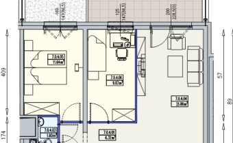 Mieszkanie składa się z salonu z aneksem kuchennym,dwóch sypialni, łazienki,wc,ustawnego przedpokoju oraz
