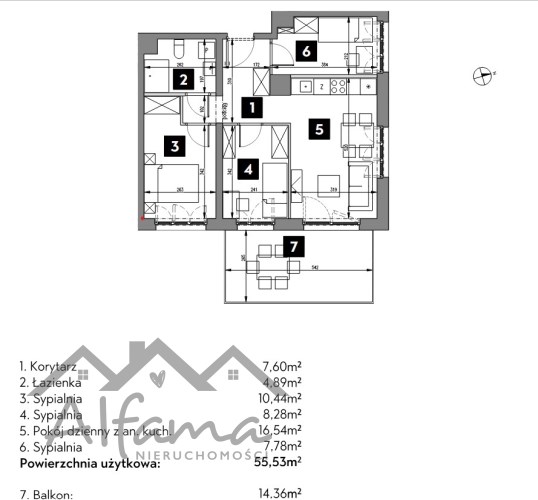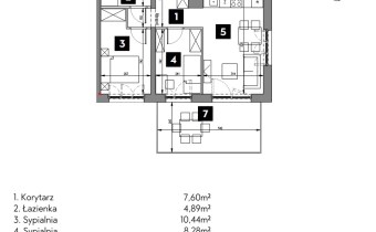 Słoneczne, funkcjonalne mieszkanie o powierzchni 55,75 m² usytuowane na 1. piętrze nowoczesnego budynku z windą.