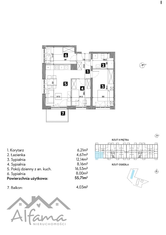 Słoneczne, funkcjonalne mieszkanie o powierzchni 55,71 m² usytuowane na II piętrze nowoczesnego budynku z windą.