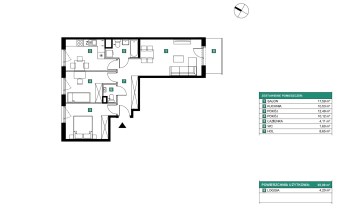 Mieszkanie składa się z przestronnego pokoju dziennego,oddzielnej kuchni, dwóch ustawnych sypialni, przedpokoju z miejscem na szafę, łazienki,wc oraz