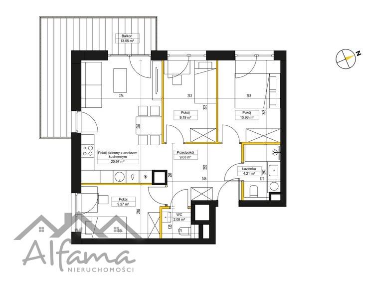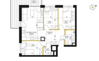 Mieszkanie składa się z przestronnego salonu z aneksem kuchennym , 3 sypialni, ustawnego przedpokoju, łazienki, wc oraz dodatkowo tarasu(14 m2)