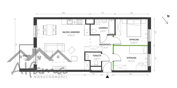 – duży, przestronny salon z aneksem i wyjściem na balkon