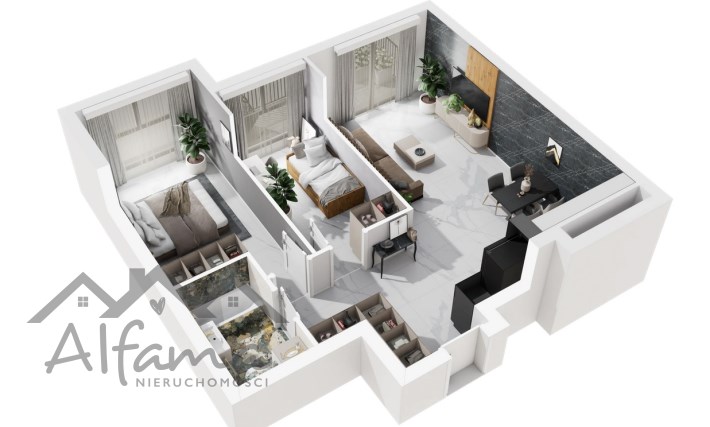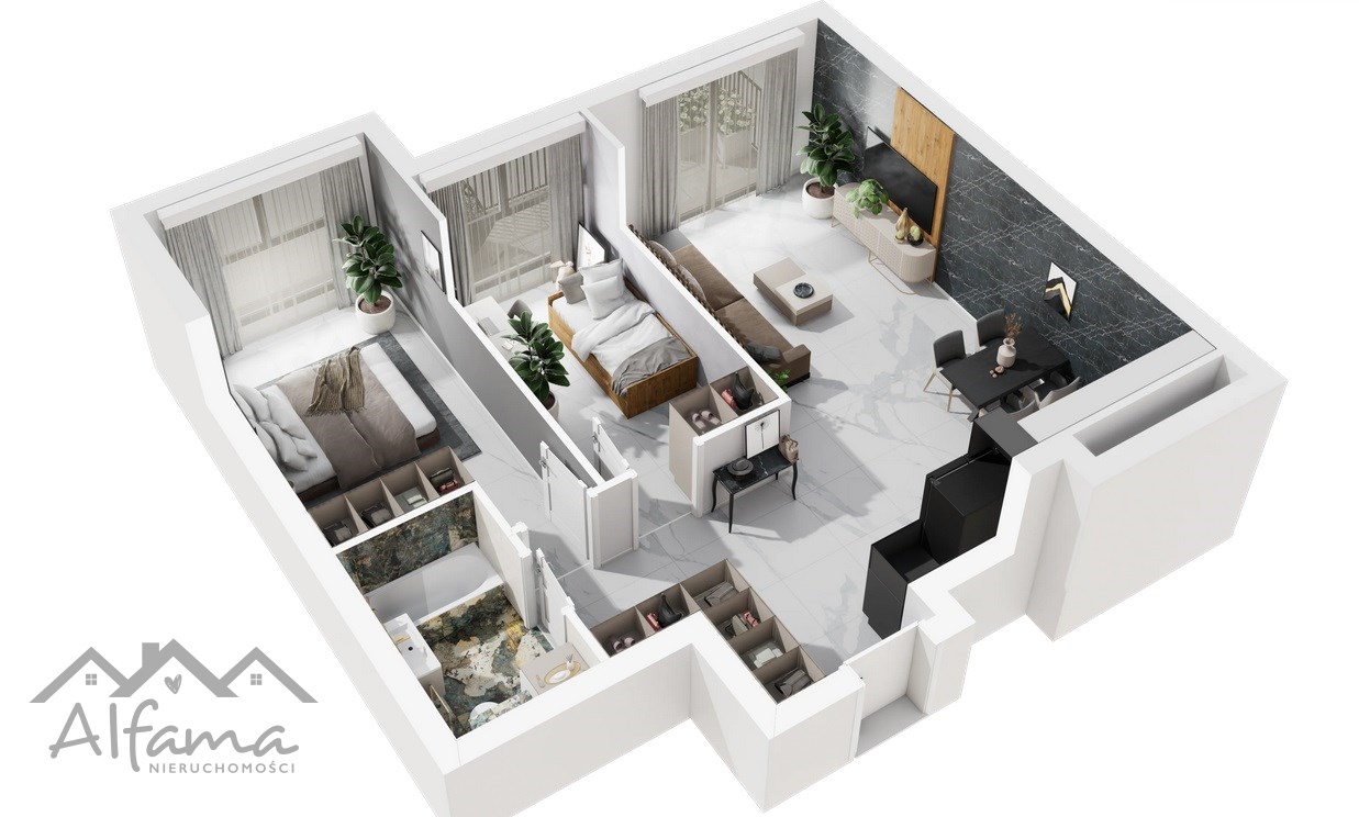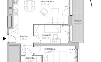 Mieszkanie oferuje jasną, komfortową przestrzeń z pięknym porannym światłem. Duży salon z aneksem i szerokimi przeszkleniami tworzy idealne miejsce do odpoczynku i spotkań. Dwie sypialnie pozwalają wygodnie zaaranżować przestrzeń zarówno dla rodziny, jak i osób pracujących zdalnie. Balkon o ponadprzeciętnej powierzchni zapewnia dodatkową przestrzeń rekreacyjną.