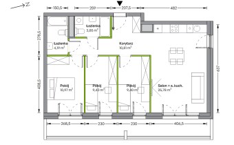 Na sprzedaż przestronne mieszkanie o powierzchni 74,40m², położone na pierwszym piętrze nowoczesnego budynku z windą. Układ został zaprojektowany z myślą o wygodzie i funkcjonalności: