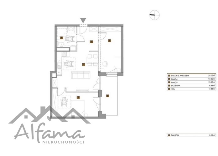 Mieszkanie składa się z przestronnego,ustawnego pokoju dziennego z aneksem kuchennym (25m2), dwóch dużych sypialni(18 i 15m2), przedpokoju z miejscem na szafę, dużej łazienki(6,40m2) oraz