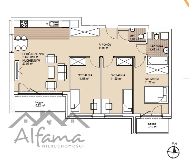 Funkcjonalne mieszkanie czteropokojowe o powierzchni ok.80m2 usytuowane na czwartym piętrze apartamentowca