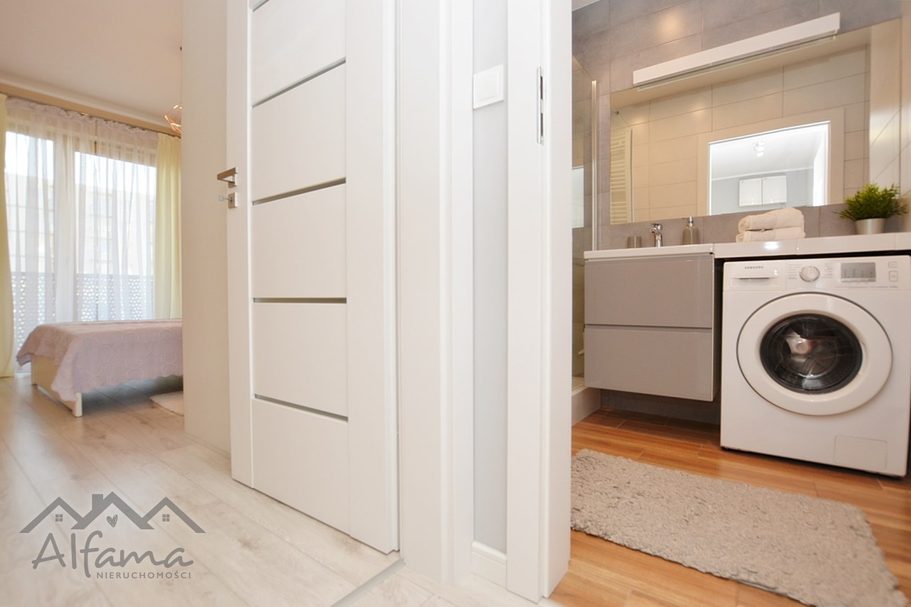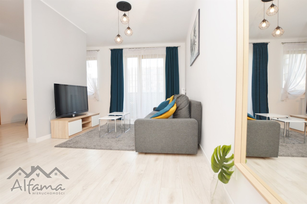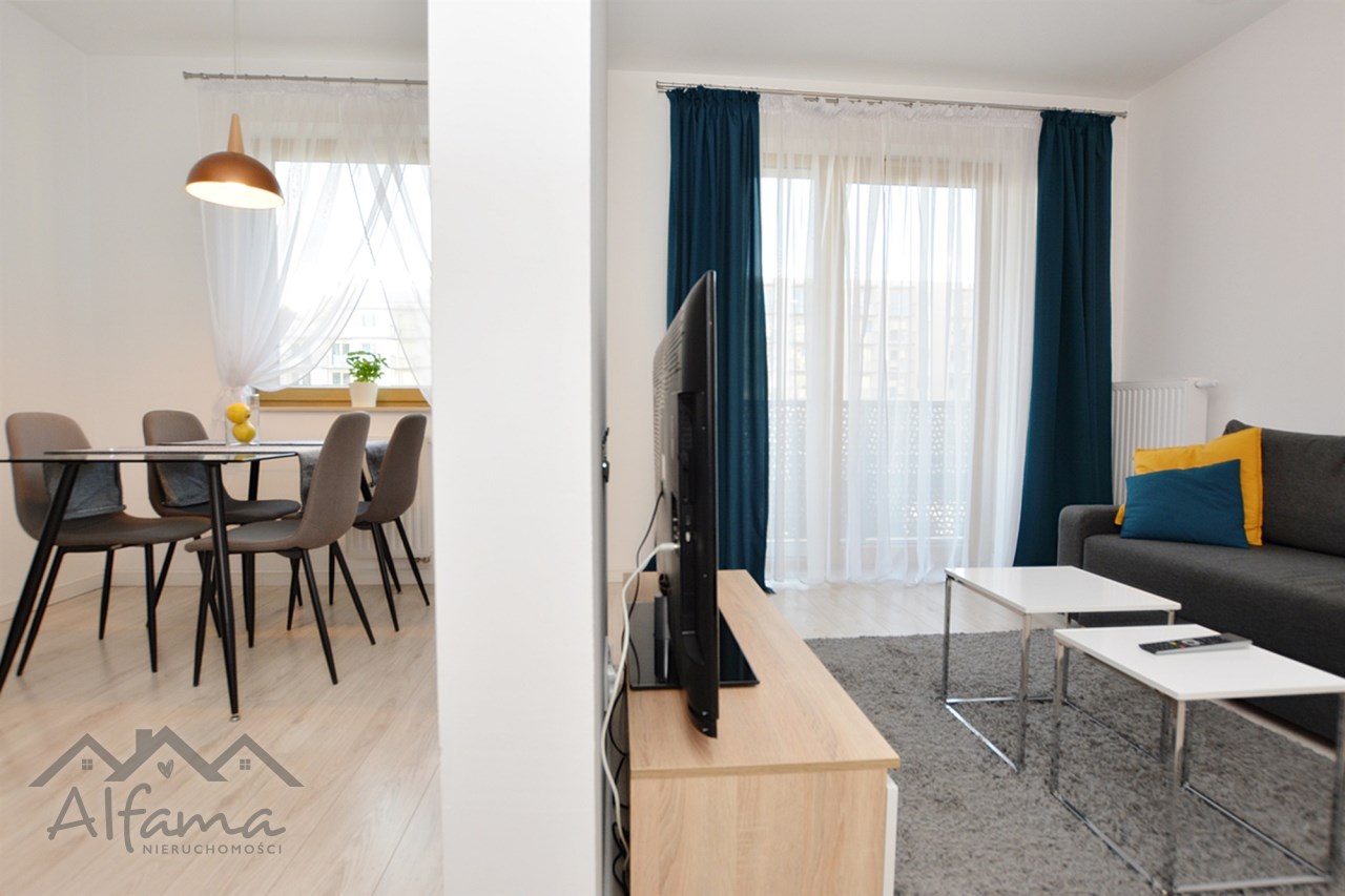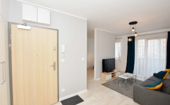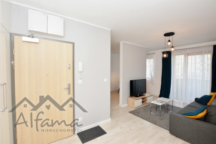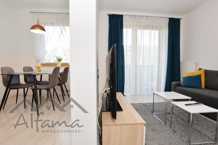 Mieszkanie ciche, słoneczne, kompletnie umeblowane i wyposażone w sprzęt AGD, usytuowane na zamkniętym ,nowoczesnym osiedlu.