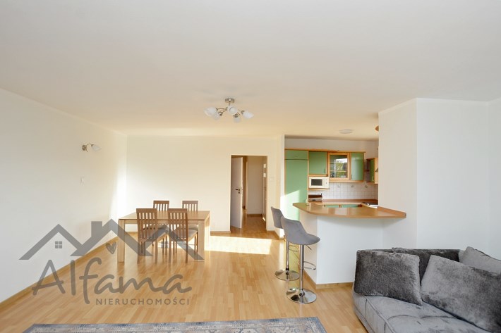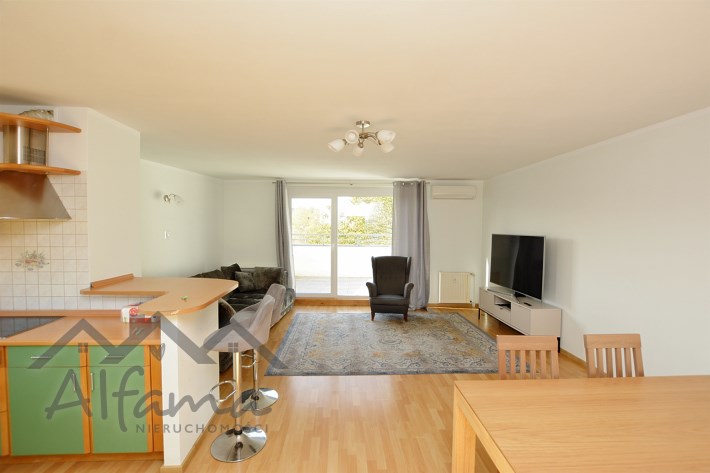 *przestronny salon połączony z jasną kuchnią (39 m2) , wyjście na słoneczny taras o powierzchni 15 m2,